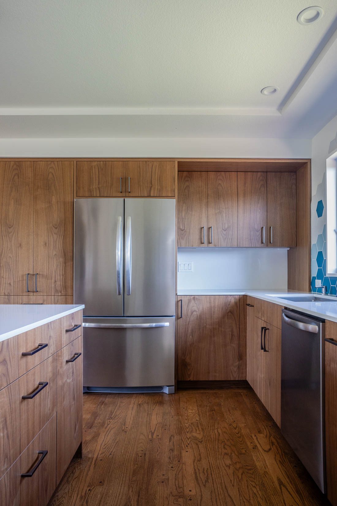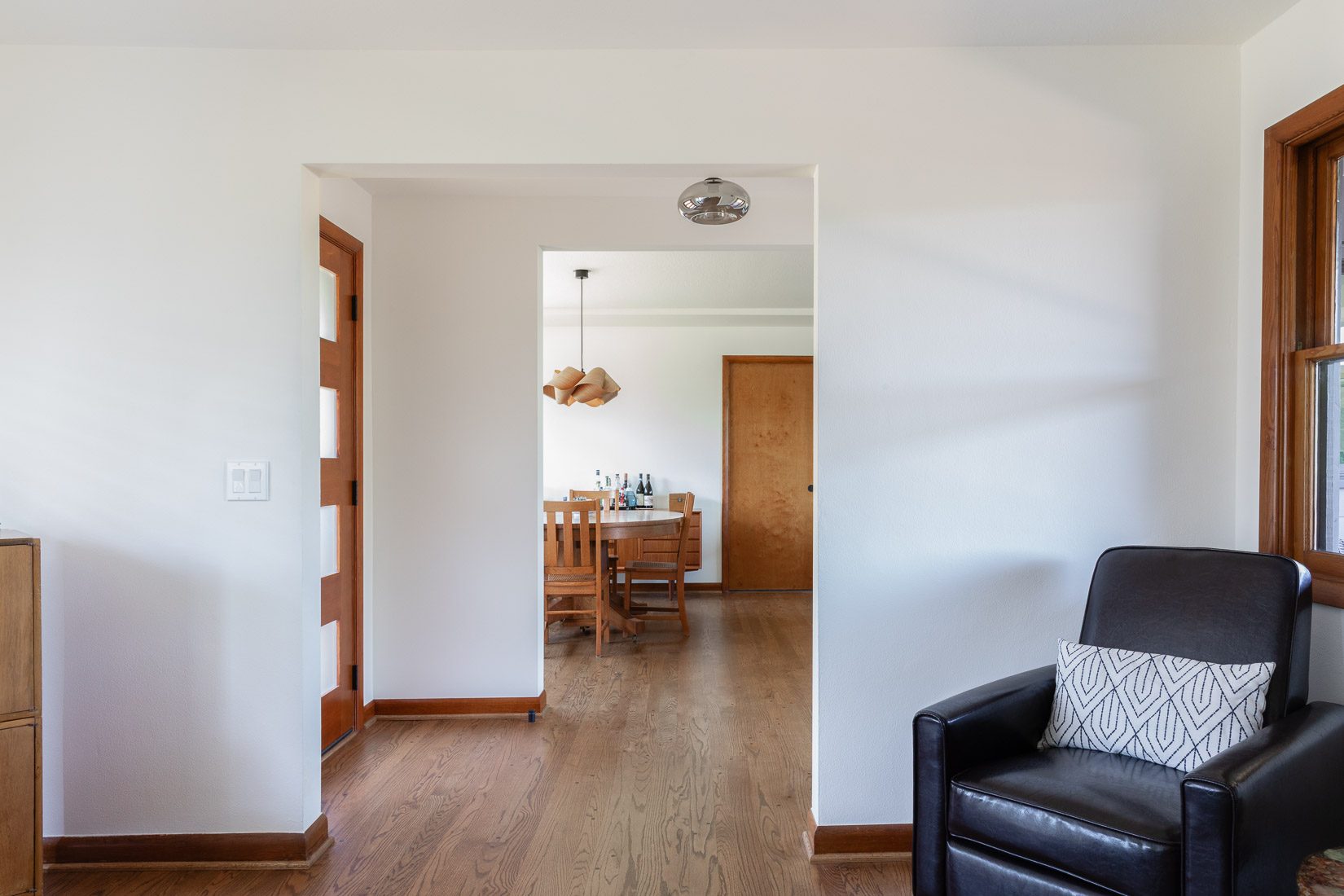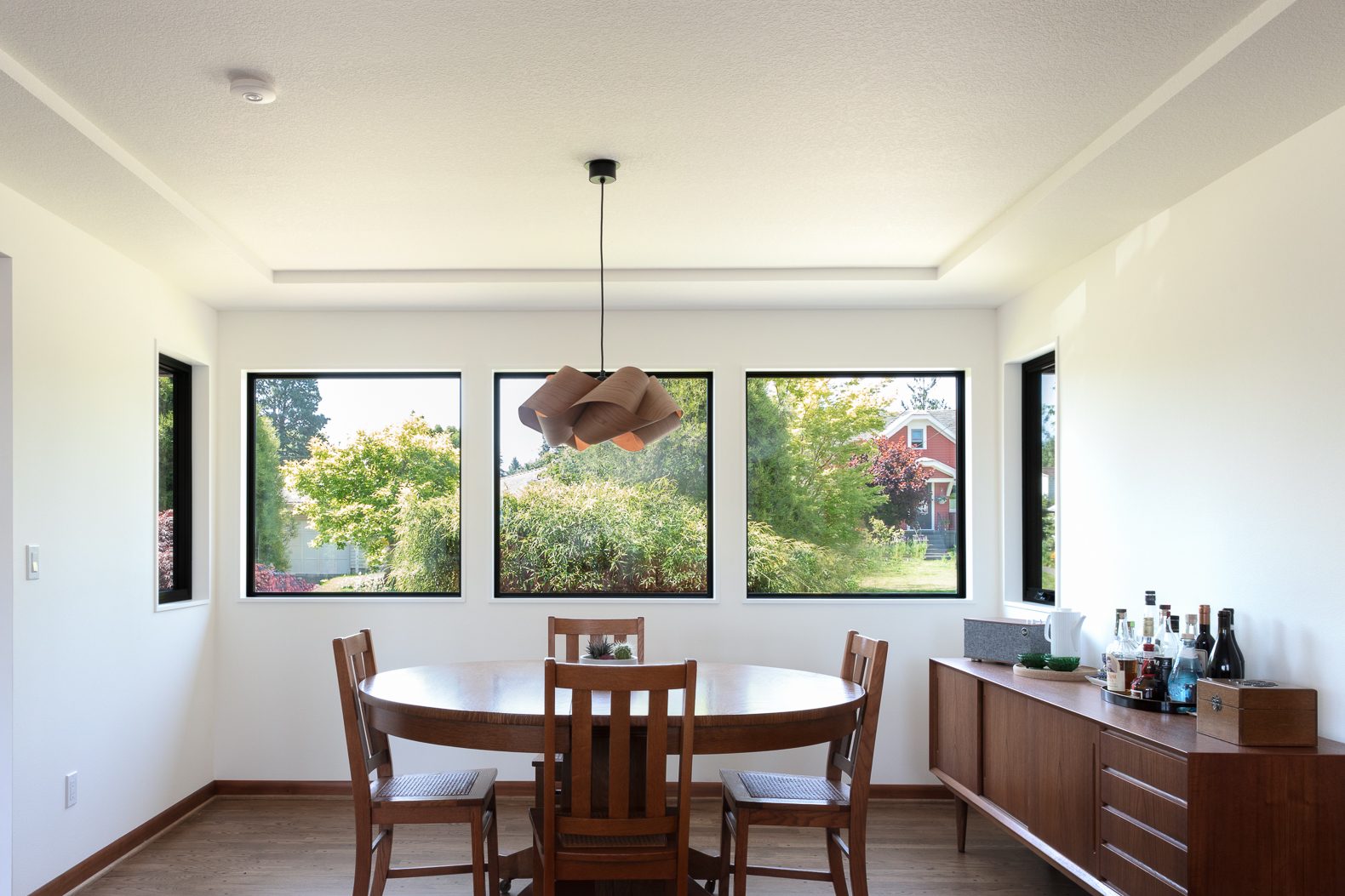 In this reimagined 1950s residence, the heart of the home was reoriented to embrace its natural surroundings. The kitchen—once at the front—was relocated to the rear, opening to sweeping views and daylight. A subtle expansion into the former garage created a light-filled addition with a generous kitchen, mudroom, and powder room. Honoring the home’s mid-century soul, original details were reinterpreted: tray ceilings were recreated, and fir-trimmed doors echo the vintage character, creating harmony between past and present. A vibrant pop of Fireclay Tile adds a playful, retro-inflected touch. To prepare for future lower-level living, a new stairwell was seamlessly integrated into the home’s flow—so natural it feels as if it had always been there. The result is a home that respects its roots while offering fresh, modern ease.